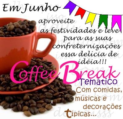 - Coffee Break temático - Mais solicitado em datas comemorativas como festas juninas, porém atendemos todos os tipos de tema. Contendo climatização de ambiente completa (decoração,músicas, trajes, objetos e muito mais)